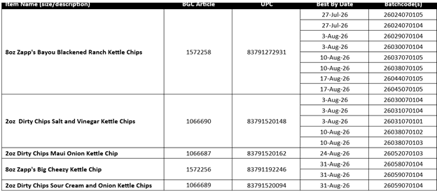 Consumers with questions may contact - Miss Vickie’s Consumer Relations at 1-877-984-2543 (9 a.m. – 4:30 p.m. CST, Monday – Friday)